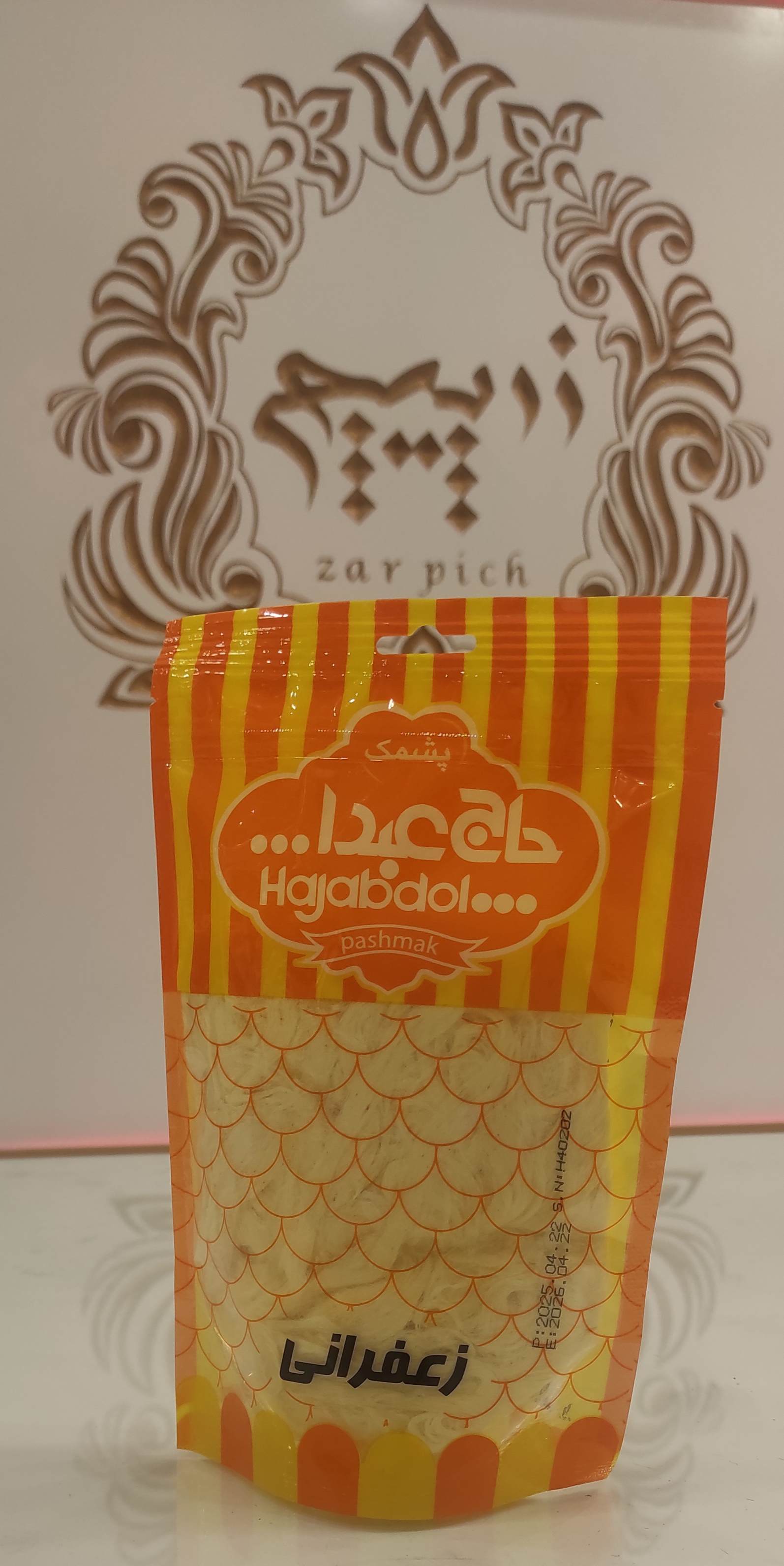 پشمک زیپی حاج عبدالله، شیرینی ابری نرم، مناسب هر سن و سلیقه. فاقد افزودنی مضر و تولید روزانه.